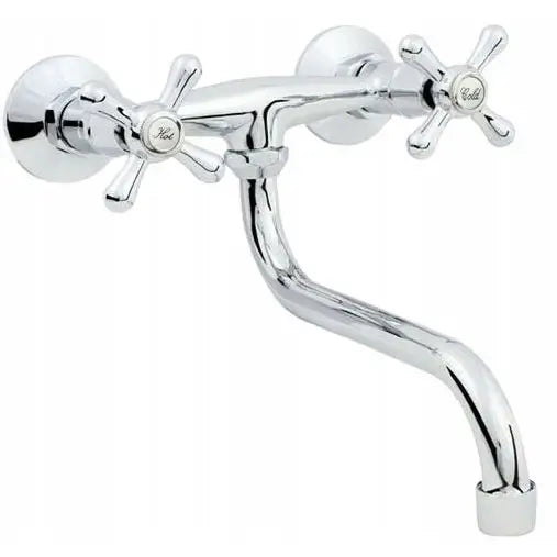 Retro Batteri Kjøkken Armatur For Vask Kran Krom Bevegelig Utslag Veggmontert