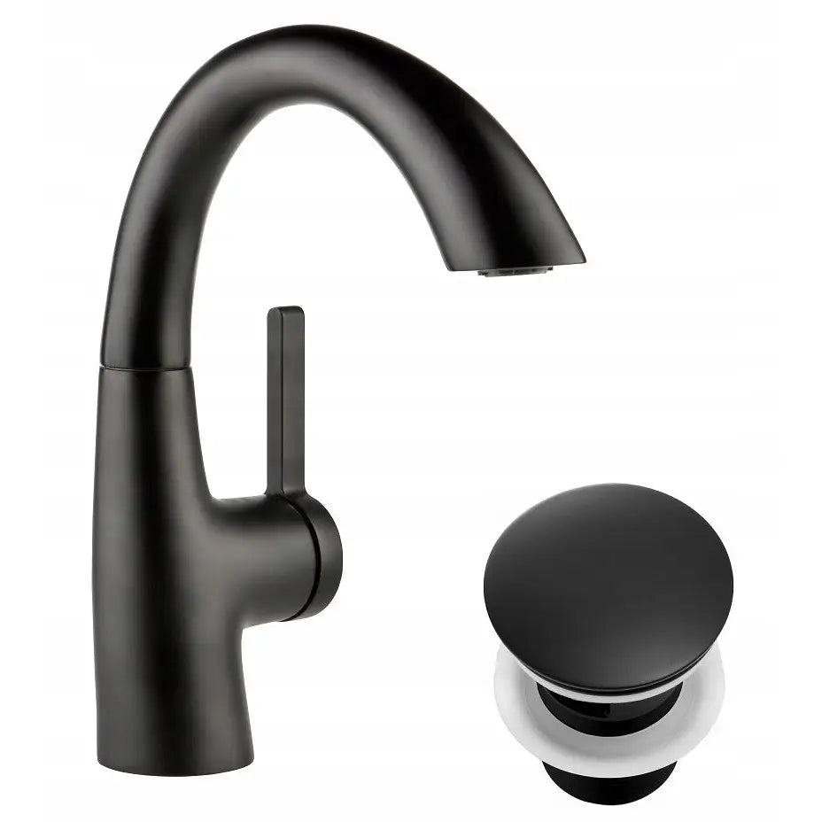 Polsk Sort Kubisk Loft Høy Vannkran For Bad Med Svingbar Tut Og Klikk-Stopp
