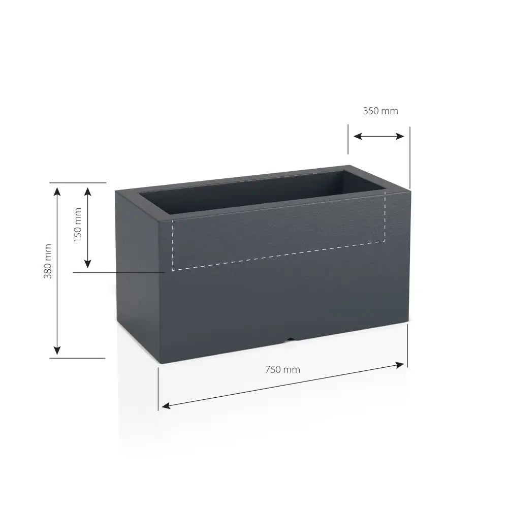 Blomsterpotte Lungo Maxi antrasitt (med indre hylle + vann drenering)