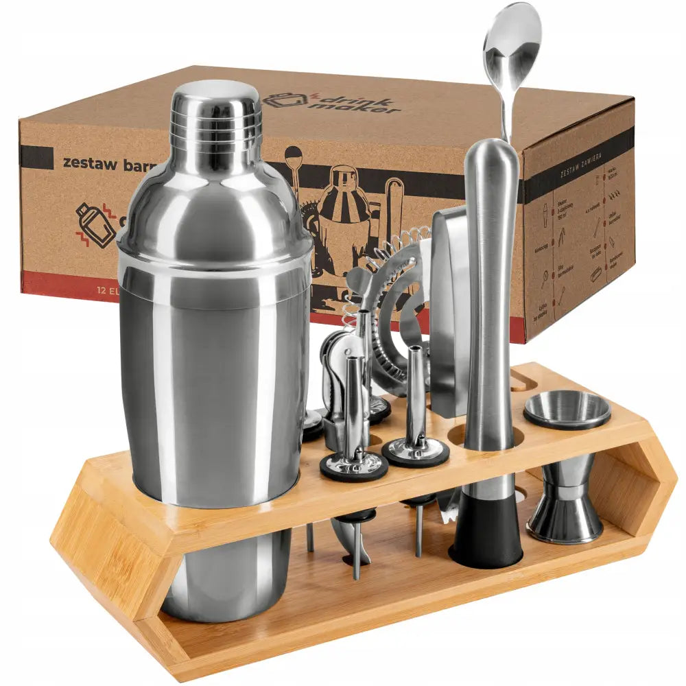 Stort Bartendersett for Drinkmiksing og Cocktails Bar 12-Delers Sølv Shaker + Stativ