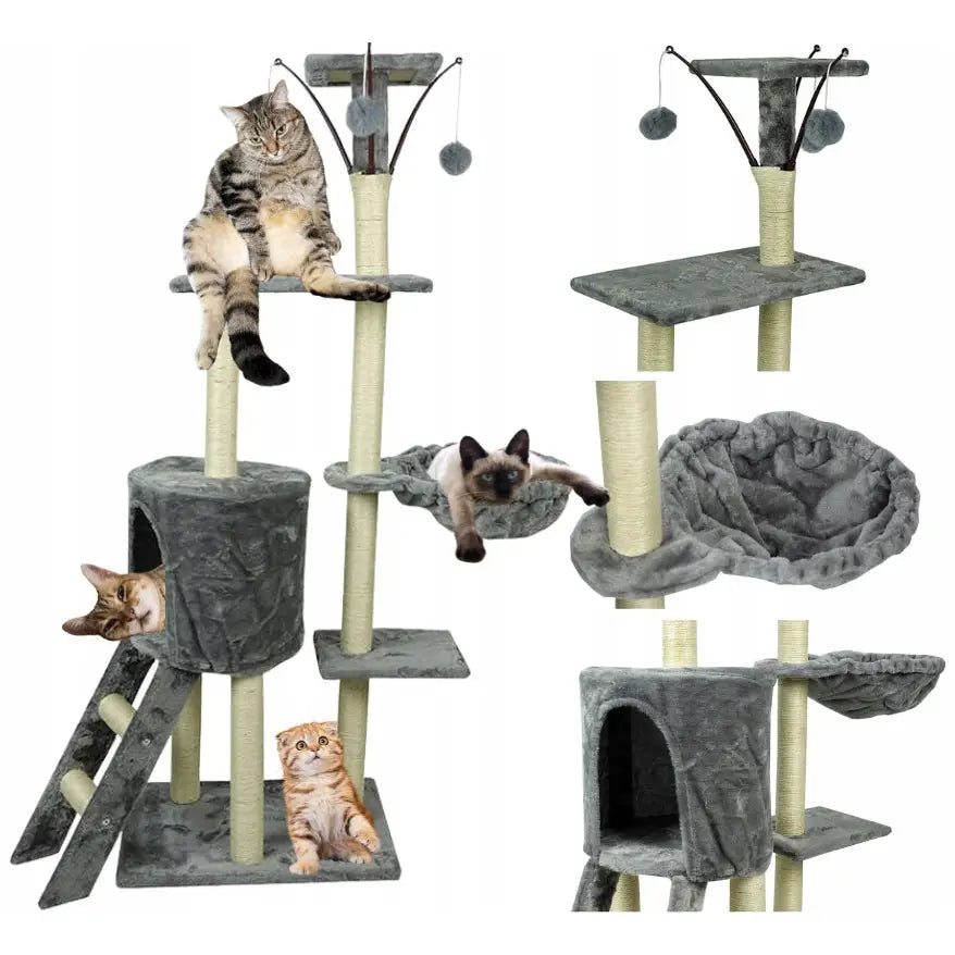 Solid klorestativ for katt, 138 cm høy med seng, tårn, flere plattformer og stor leke