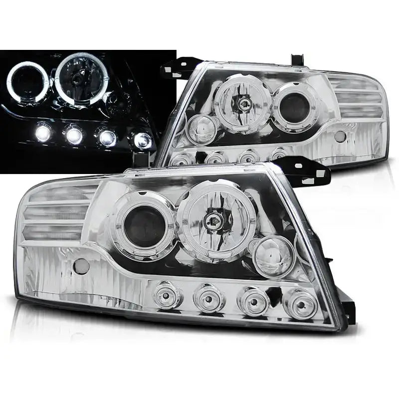 Headlights Mitsubishi Pajero V60 00-06 Angel Eyes Chrome
