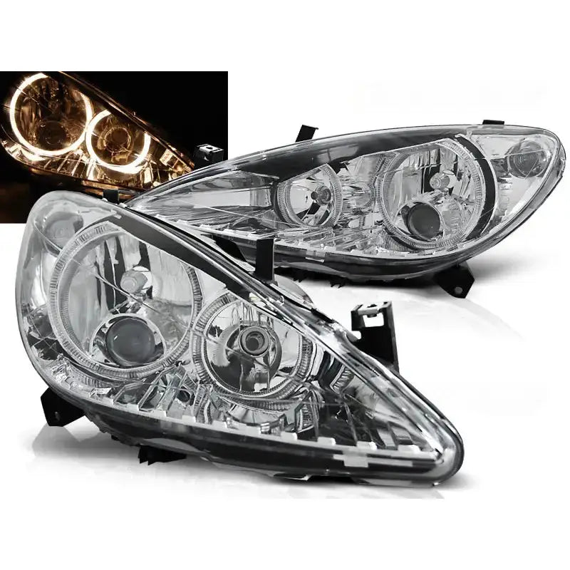 Hovedlykter Peugeot 307 04.01-06.05 Angel Eyes Clearglass Chrome