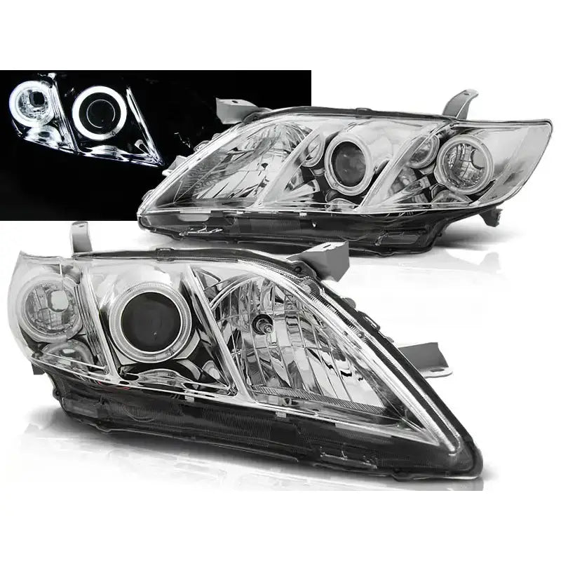 Frontlykter Toyota Camry 6 XV40 06-09 Angel Eyes Chrome