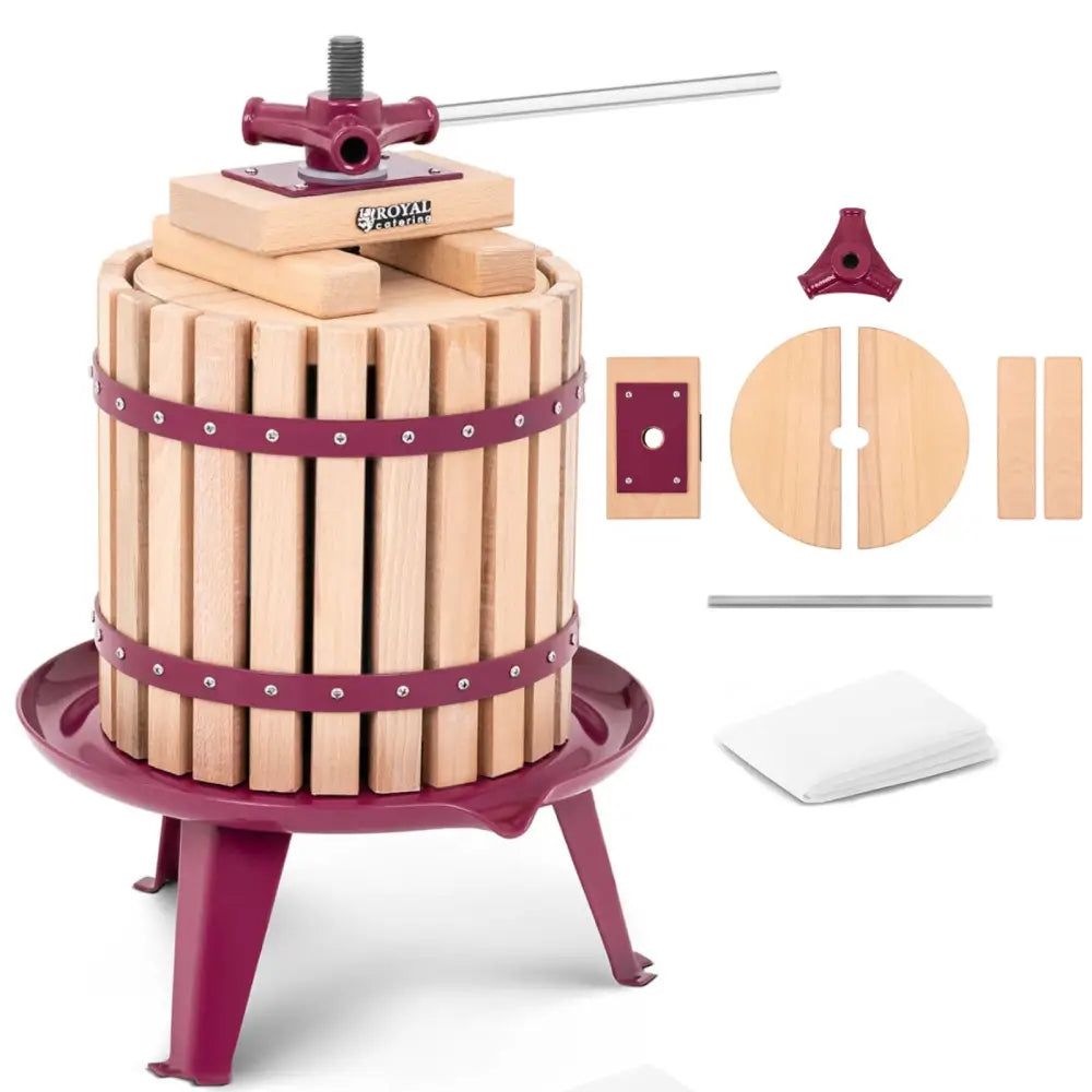 Press for extracting wine juice from fruits, handcrafted wooden + filter bag 12L