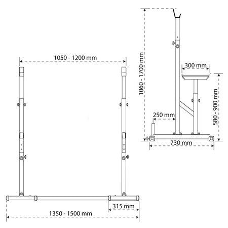 - Vekt (stativ): ca. 15 kg; vekt (benk): ca. 10 kg.