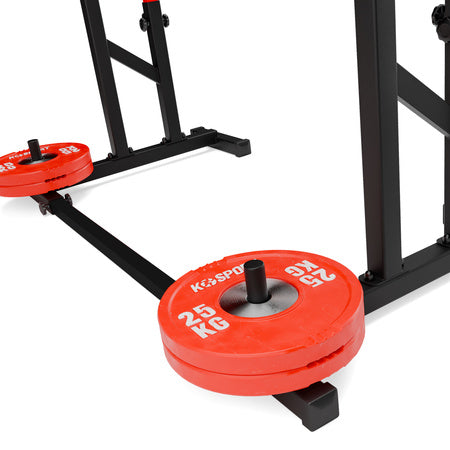 Denne regulerbare treningsbenken med stativ (modell KSSL069) fra K‑SPORT er et robust sett for effektiv styrketrening hjemme. Den justerbare treningsbenken gir 7 nivåer for rygg og 2 for sete, mens stativet har høydejustering og solide sikkerhetsarmer. En komplett løsning for trygg vektbenk‑trening og benkpress.