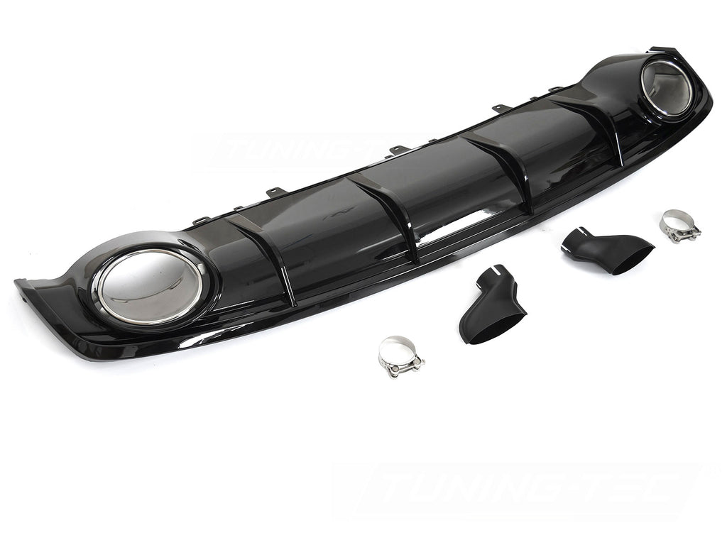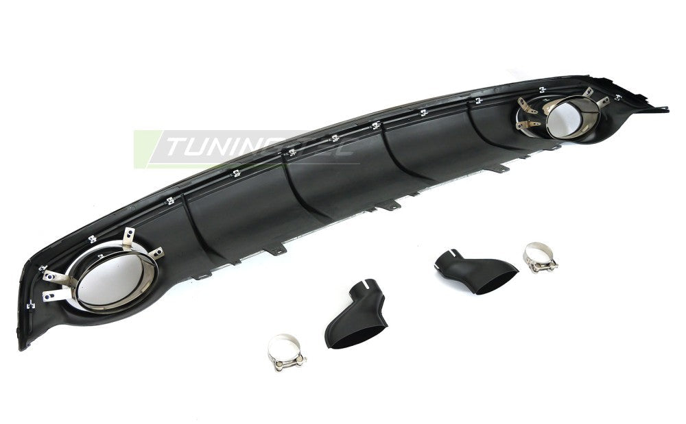 Bakdiffusor Audi A7 C7 Sportback 2014–2018 gir en oppgradert, sportslig look med dobbelt utløp. Denne løsningen passer kun standard bakfanger og er laget for å sitte pent og stabilt. Alternativt omtales produktet som Diffusor bakfanger Audi A7 C7 2014–2018 og Bakfanger diffusor Audi A7 C7 2014–2018.