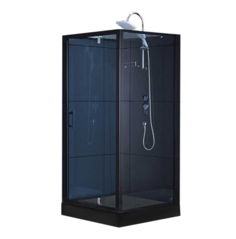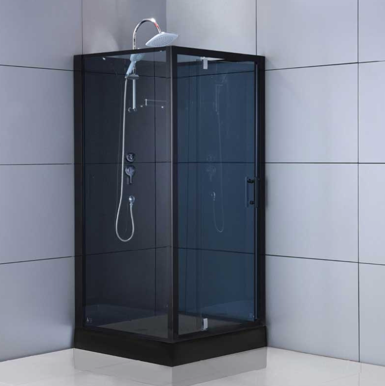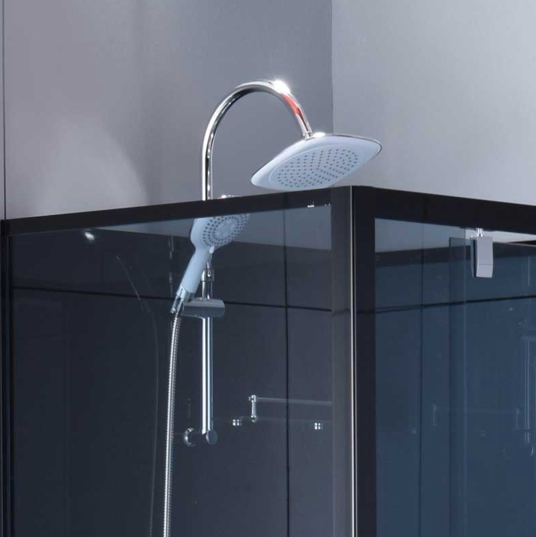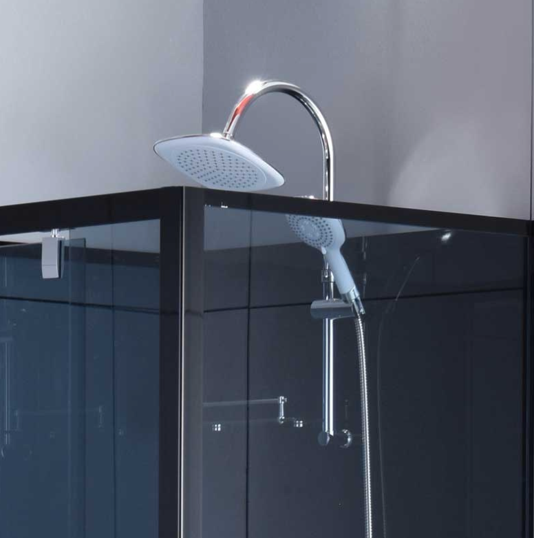 - Bakvegger: 5 mm herdet glass (svart, med regndusj og dusjhode)