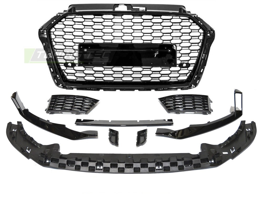 Frontfanger Audi A3 8V 2017–2020 passer til femdørs 2017–2020 og er laget av polypropylen. Denne varianten i SPORT STYLE har hull og holdere for parkeringssensorer (PDC).