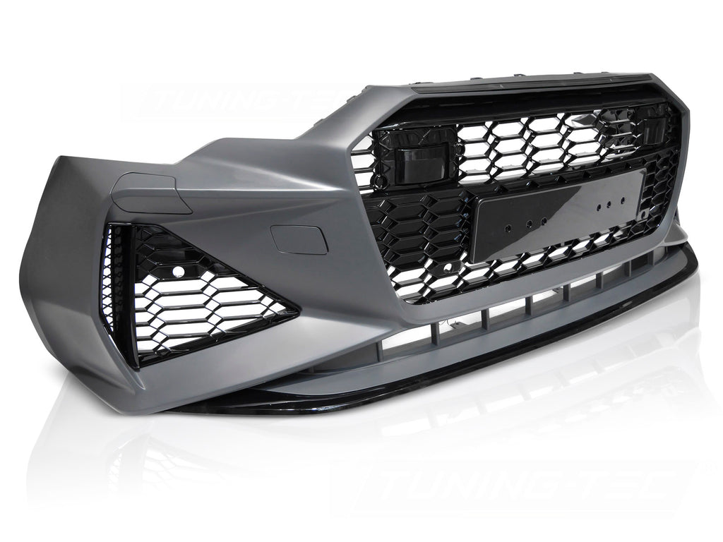 Frontfanger Audi A6 C8 2018–2022 gir bilen et sportslig uttrykk og passer perfekt til Audi A6 C8 2018–2022. Denne løsningen i polypropylen har hull for parkeringssensorer (PDC), plass og holder for frontkamera, samt plass for Active Cruise Control (ACC). Støtfanger foran Audi A6 C8 2018–2022 leveres som komplett kit klart for montering. Frontfanger sport Audi A6 C8 2018–2022 sørger for OEM-lignende passform.