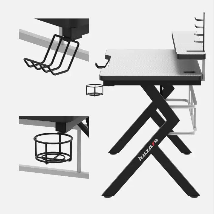 Gjør spilloppsettet ditt både raskere og ryddigere med Huzaro Hero 5.0 White – et solid gamingbord med karboninspirert overflate, forhøyet monitorhylle og smart kabelhåndtering. Perfekt for PC-spillere og streamere som vil ha maksimal plass og stabilitet på et kompakt fotavtrykk.