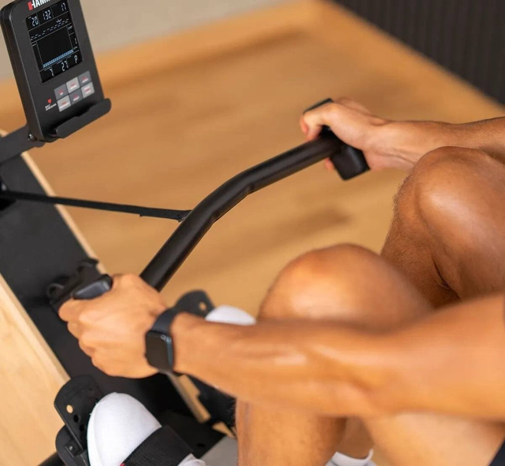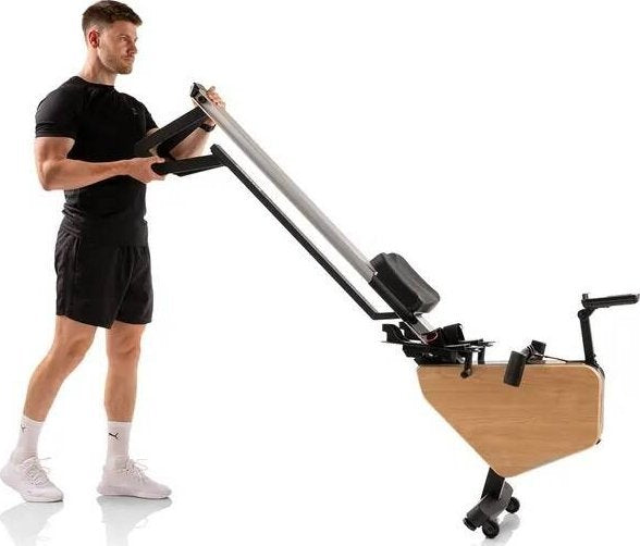 Hammer RowTech NorsK er en praktisk sammenleggbar romaskin for liten plass, perfekt for deg som vil ha et komplett treningsapparat uten at det tar over hele rommet. Etter økten kan du enkelt folde den sammen og trille den bort ved hjelp av de integrerte transporthjulene, noe som gjør den lett å flytte mellom for eksempel stue og gjesterom. Den magnetiske motstanden krever ingen tilkobling til strøm på enkle modeller med manuelt justerbar motstand, og generelt gir magnetteknologien lavt støynivå og minimalt vedlikehold. Dermed får du en stillegående og effektiv magnetisk romaskin til hjemmetrening som gjør det enkelt å holde formen året rundt, uten å måtte dra på treningssenter. Samspillet mellom det varme treverket og den moderne aluminiumsrammen gjør at apparatet glir naturlig inn i interiøret, enten det står permanent fremme eller tas frem ved behov.