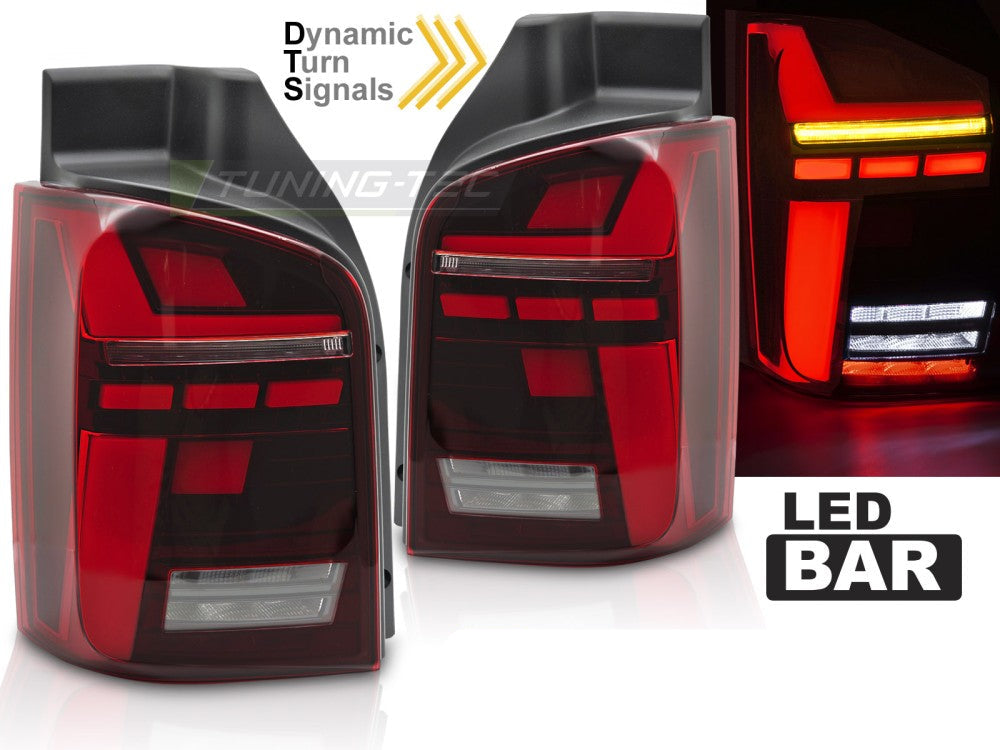 - LED baklykter Volkswagen T5 2003–2015 med dynamiske blinklys (LED baklamper VW T5 2003–2015).