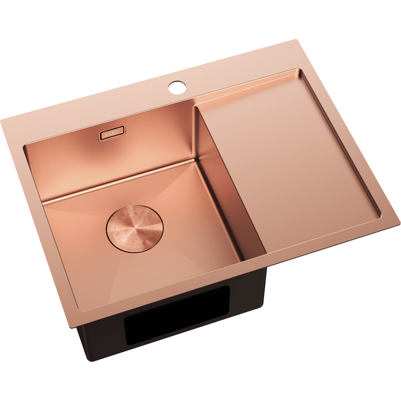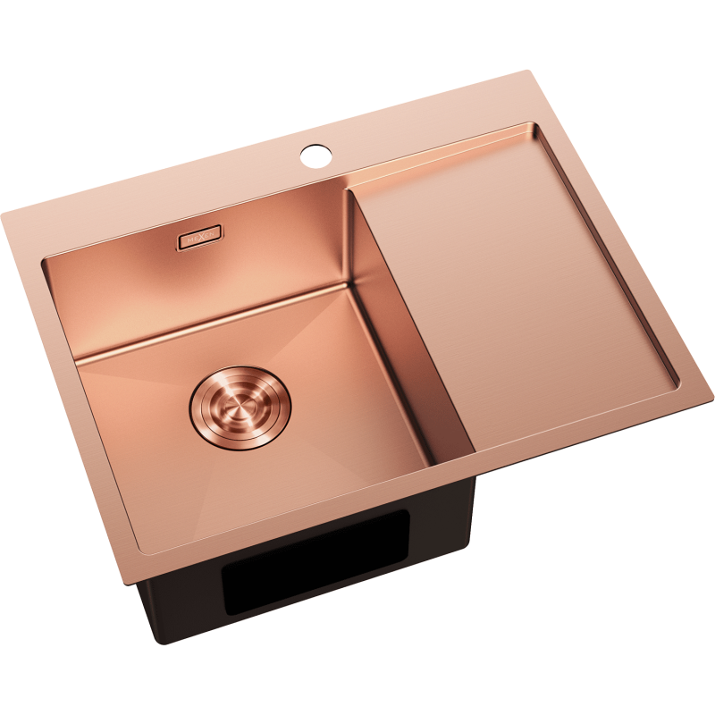 - Mexen Exar kjøkkenvask i rustfritt stål AISI 304, kobberfarget, 1 kum med kort avrenningsfelt, venstreorientert