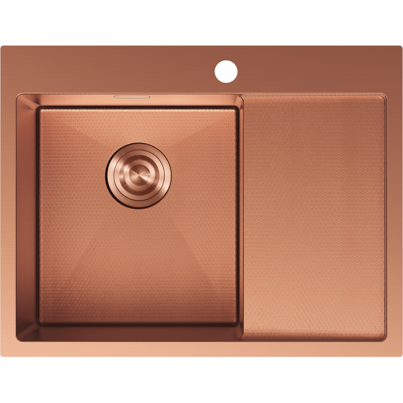 Vasken er produsert i rustfritt stål AISI 304, som gir høy motstandsdyktighet mot korrosjon, slag, riper og misfarging. Overflaten med bikubemønster gir et moderne utseende og gjør denne kjøkkenvasken i stål med kobberfinish enklere å holde ren. Dette er en funksjonell og stilren løsning for deg som ønsker en rustfri stålvask 620 x 480 i kobberfinish.