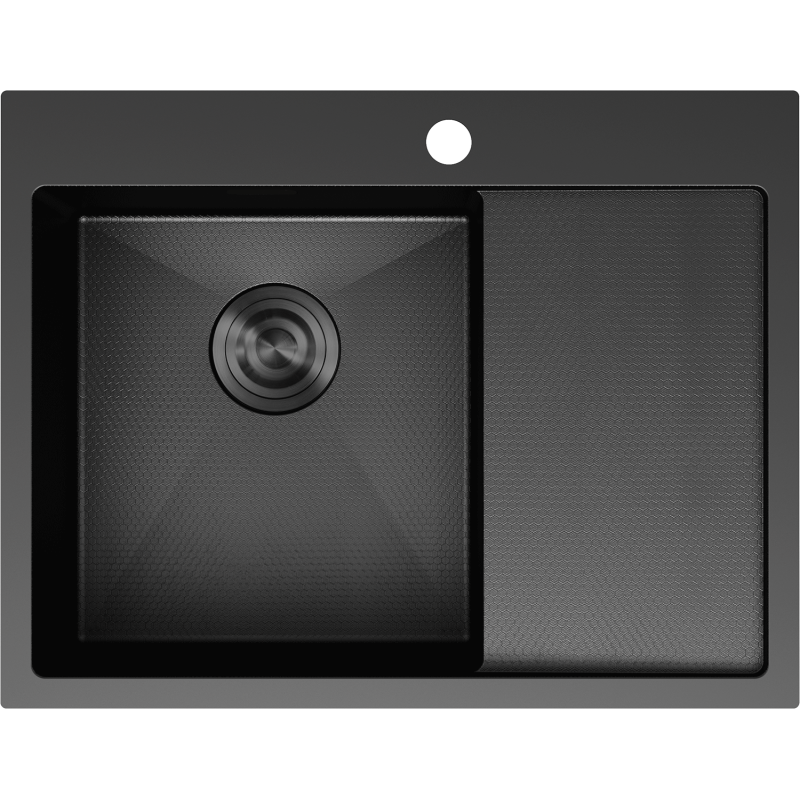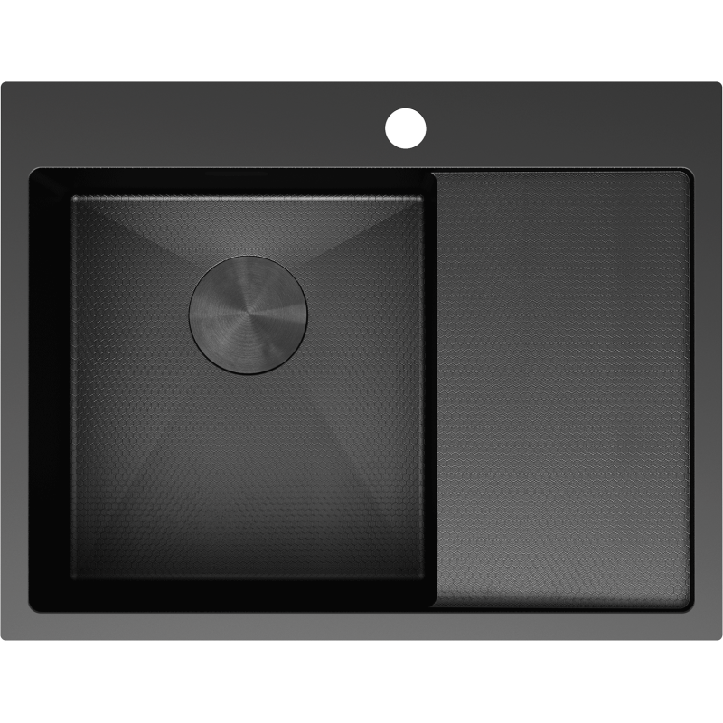 Overflaten har en struktur i «bikube»-mønster, som ikke bare gir et moderne og eksklusivt utseende, men også bidrar til enklere rengjøring og bedre motstand mot riper. Den svarte stålvasken med 1 kum er utstyrt med integrert hull til kjøkkenbatteri, skjult overløp og en stor avløpsåpning på ø 92 mm, tilpasset moderne avløps- og avfallsløsninger.