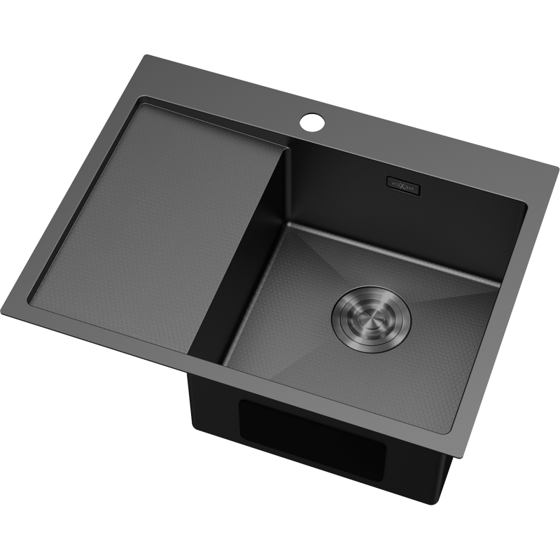 - Mexen Exar kjøkkenvask i rustfritt stål AISI 304, svart, 1 kum med kort avrenner (høyre)