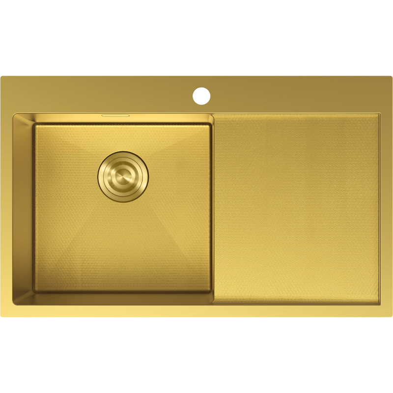 - Mexen Exar kjøkkenvask i rustfritt stål AISI 304, gull, 1 kum med lang avrenner (venstreversjon)