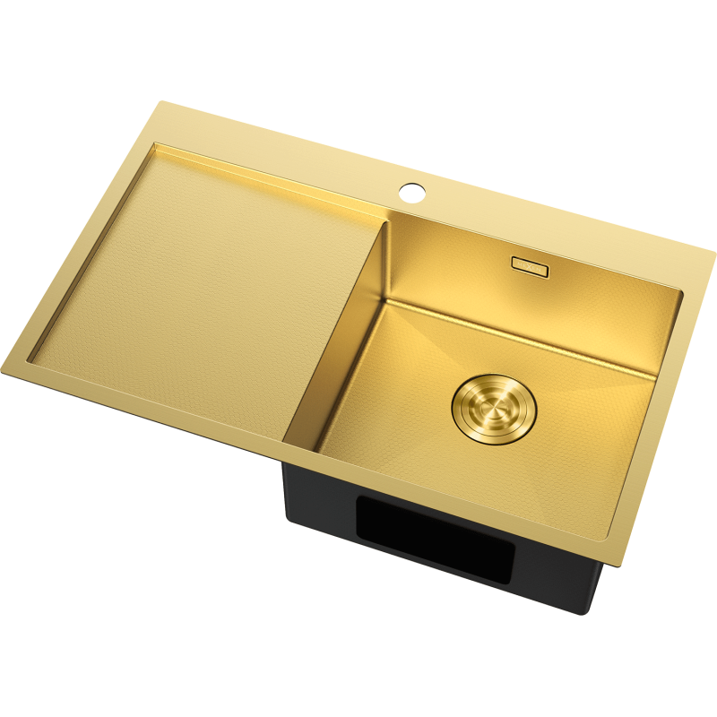 Vasken er produsert i rustfritt stål AISI 304 og har en eksklusiv gullfarget overflate med struktur i bikubemønster, som gir et moderne uttrykk og samtidig bidrar til å skjule små riper ved daglig bruk. Med sine mål på 780 x 480 x 200 mm er dette en rustfri kjøkkenvask 780 x 480 som passer godt i både moderne og klassiske kjøkkenløsninger.