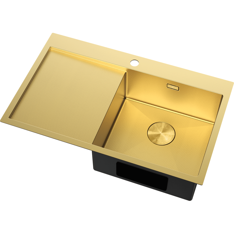 - Mexen Exar kjøkkenvask i rustfritt stål AISI 304, gullfarge, 1 kum med lang avrenner, høyre