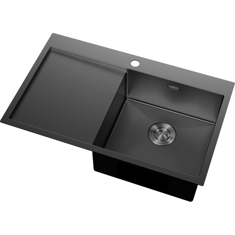 • Mexen Exar kjøkkenvask i rustfritt stål AISI 304, svart, 1 kum med avrenner (høyreversjon)