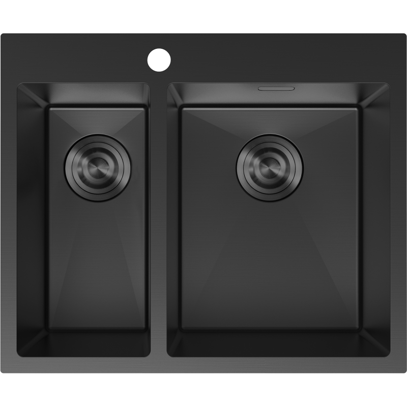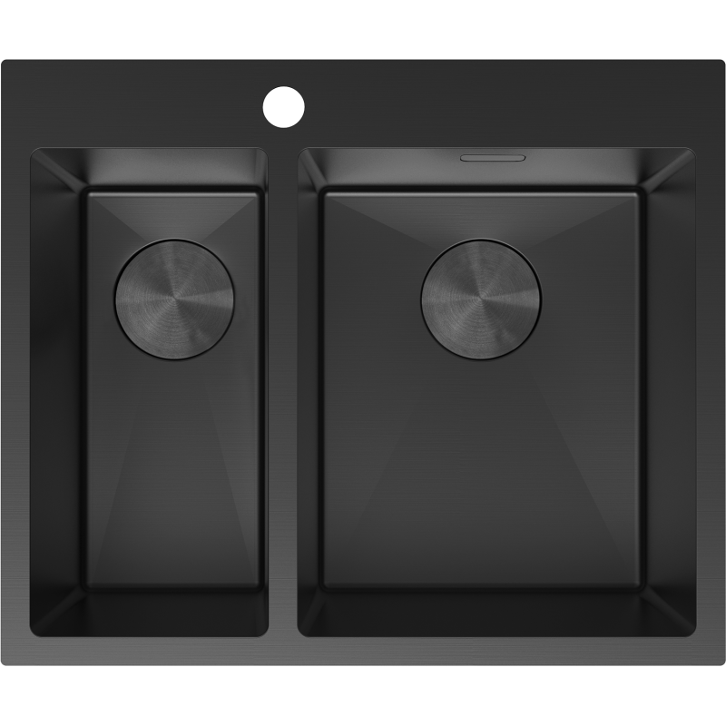 Vasken er produsert i høykvalitets rustfritt stål AISI 304 med svart overflate, noe som gir et eksklusivt uttrykk og gjør den til et naturlig midtpunkt på kjøkkenet. Den glatte overflaten og de rette linjene kombinert med hjørner med R10-radius gir en moderne, minimalistisk design som passer både i nye og oppgraderte kjøkken.