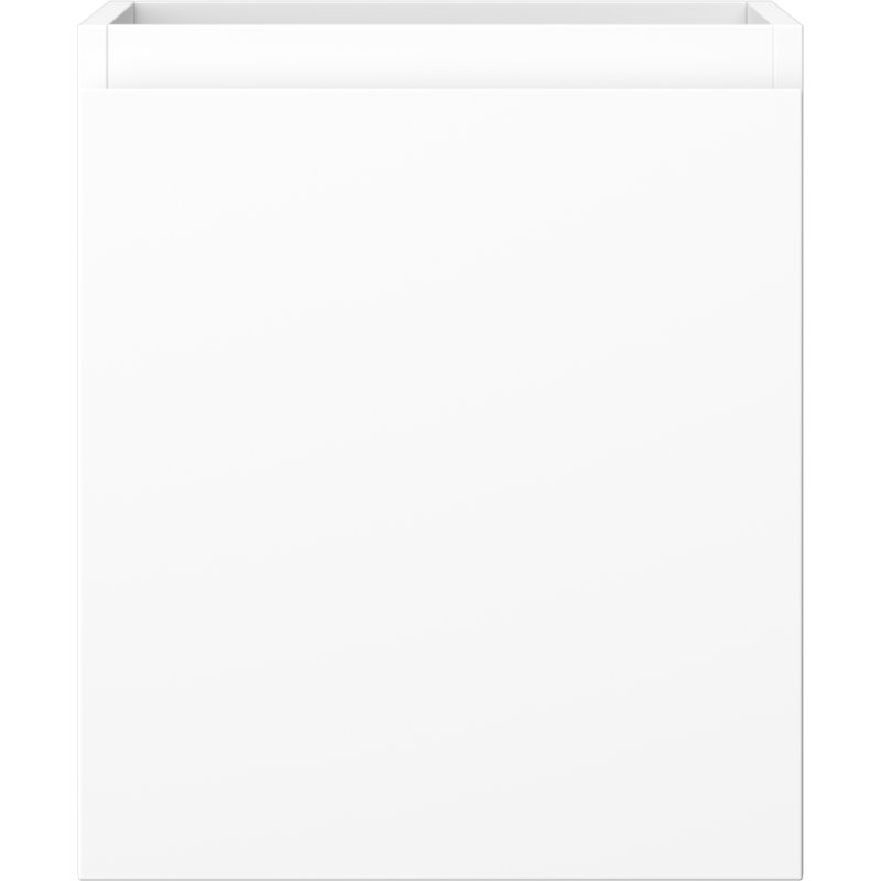 Servantskapet har en bredde på 40 cm, høyde på 47 cm og dybde på 46 cm, noe som gjør det ideelt som plassbesparende servantskap til bad. Korpus er produsert i lakkert plate i fargen hvit matt, mens fronten er laget av lakkert MDF-plate, også i hvit matt, med en glatt og jevn overflate som understreker det moderne uttrykket.