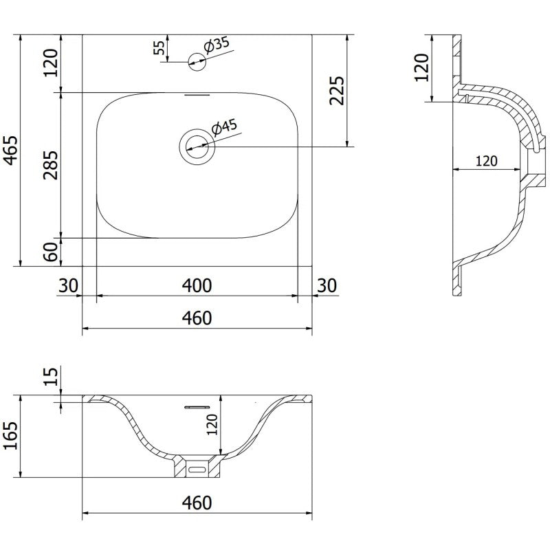 - Mål servant (bredde x dybde x høyde): 46 cm x 46,5 cm x 16,5 cm