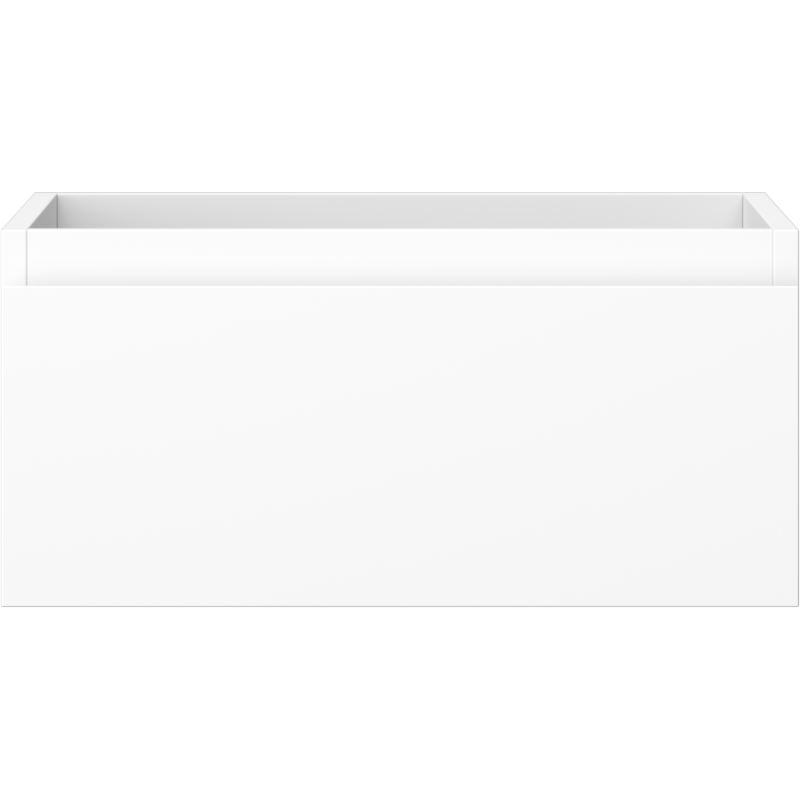 Den romslige skuffen gir god lagringsplass til toalettsaker, kosmetikk og andre nødvendigheter, slik at benkeplaten kan holdes ryddig. Den glatte, lakkerte overflaten er lett å rengjøre og bidrar til enkelt vedlikehold i en travel hverdag. Systemet for myk lukking sørger for stille og kontrollert lukking, noe som gir en mer behagelig brukeropplevelse og reduserer støy på badet. Som vegghengt servantskap letter det også rengjøringen av gulvet under møbelet og gir et luftig og moderne preg til baderommet.