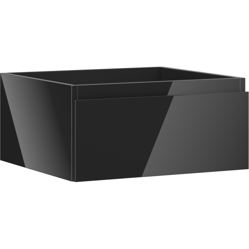 Den romslige skuffen gir ryddig oppbevaring av toalettsaker, kosmetikk og andre baderomsartikler, slik at benkeplaten holdes fri for rot. Den glatte, lakkede overflaten i svart høyglans er enkel å tørke av og holde ren, og den solide konstruksjonen i lakkert plate og MDF sikrer god holdbarhet i et fuktig baderomsmiljø. Systemet for myk lukking sørger for stille og behagelig bruk i hverdagen, noe som er spesielt praktisk i et servantskap til bad som brukes ofte.