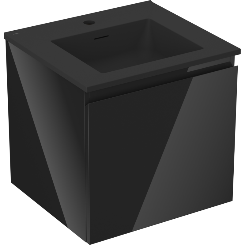 Kombinasjonen av svart høyglans skap og svart matt servant gir et moderne, grafisk uttrykk som passer inn i både minimalistiske og mer uttrykksfulle baderomsstiler. Som del av baderomsmøblene fra Mexen kan dette møbelet enkelt kombineres med andre elementer i samme serie for et helhetlig interiør.