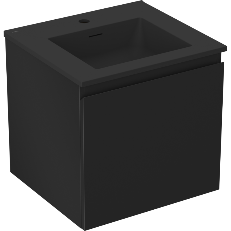 Den glatte, lakkerte overflaten i svart matt gjør møbelet enkelt å rengjøre og vedlikeholde. Materialene er motstandsdyktige mot fuktighet og UV-stråling, noe som gir høy slitestyrke og lang levetid, selv i et fuktig baderomsmiljø. Den moderne, rette designen og den svarte matte Otis-servanten i konglomerat gir et tidløst uttrykk som enkelt kan kombineres med andre baderomselementer, slik at baderomsskap 50 cm kan inngå i både små og større baderomsløsninger.