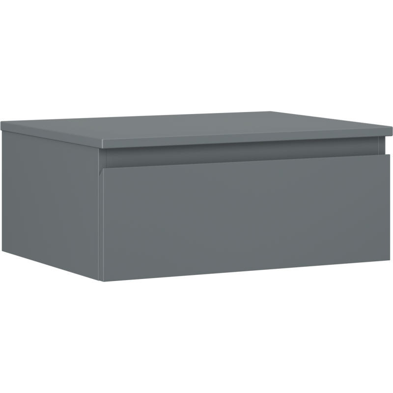 Servantskapet har en bredde på 60 cm og består av et kompakt underskap med én romslig skuff og en tilpasset plate på toppen. Både skrog og front leveres i grafitt matt, noe som gir et stilrent og tidløst uttrykk som passer godt inn i mange typer baderomsinnredninger. Som et plassbesparende servantskap til bad er det ideelt for både mindre og mellomstore baderom.
