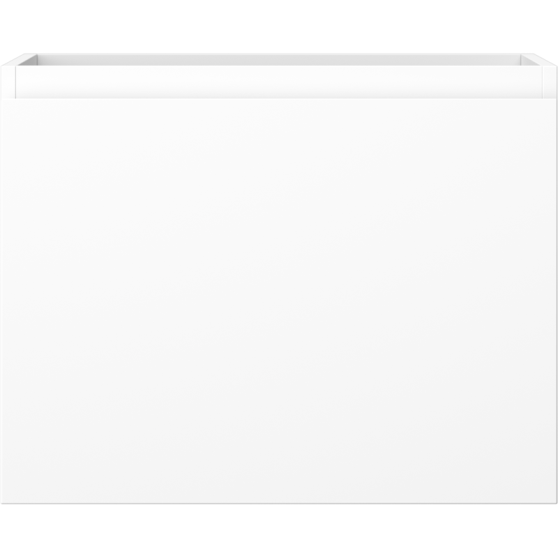Overflatene på dette servantskapet til bad er lakkert og UV-bestandige, noe som gjør at fargen hvit matt holder seg pen over tid uten å falme ved eksponering for lys. Den glatte fronten i MDF er enkel å tørke av og holde ren, samtidig som den understreker skapets moderne og minimalistiske design.