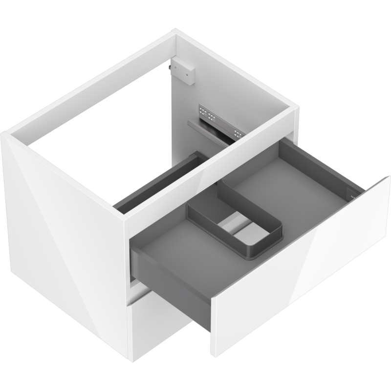 Dette underskapet til servant er utstyrt med 2 romslige skuffer som gir god og oversiktlig oppbevaringsplass til daglige baderomsartikler. Skuffene har funksjon for myk og stille lukking (myk lukking), noe som øker komforten i hverdagen og beskytter både mekanismer og fronter mot unødvendig slitasje. Fullt uttrekk på skuffene gjør at du enkelt får tilgang til hele innholdet, noe som er spesielt praktisk i et kompakt servantskap til bad.
