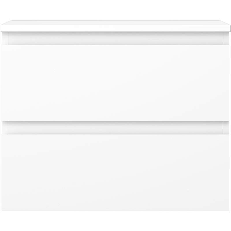 Både korpus, front og toppplate har UV-bestandig overflate som bidrar til å bevare den rene hvit matt-fargen over tid, selv i lyse baderom med mye sollys.