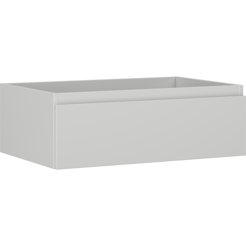 Den romslige skuffen gir god lagringsplass til toalettsaker, kosmetikk og andre baderomstilbehør, slik at benkeplaten kan holdes ryddig. Fulluttrekk og soft close gjør daglig bruk komfortabel, samtidig som den glatte, matte overflaten er enkel å tørke ren. Som servantskap til bad bidrar det vegghengte designet til enklere rengjøring av gulvet og et mer åpent uttrykk i rommet.