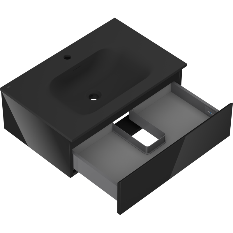 Selve skapet har en bredde på 70 cm, dybde på 46 cm og høyde på 23,5 cm, og er produsert i lakkert plate med front i lakkert MDF. Både korpus og front er i svart høyglans med glatt overflate. Servanten Vela som følger med, har en bredde på 71 cm, dybde på 46,5 cm og høyde på 16,5 cm, og er utført i slitesterk konglomerat i svart matt utførelse.