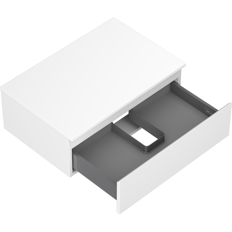 Den romslige skuffen gir god oppbevaringsplass til toalettsaker, kosmetikk og andre nødvendigheter, slik at benkeplaten kan holdes ryddig. Glatte, lakkede overflater er enkle å tørke av og vedlikeholde, samtidig som UV-bestandigheten bidrar til langvarig estetikk og holdbarhet. Den stille myk-lukkende mekanismen gir en mer behagelig hverdag, spesielt i mindre rom der lydnivået merkes godt.