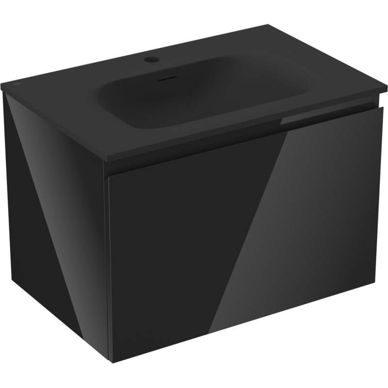 Skapet har en bredde på 70 cm, dybde på 46 cm og høyde på 47 cm, og er utstyrt med én romslig skuff. Korpus er produsert i lakkert plate i fargen svart høyglans, mens fronten er laget av lakkert MDF-plate med glatt struktur, også i svart høyglans. Den medfølgende Vela-servanten i svart matt konglomerat er nøye tilpasset skapet og gir en helhetlig, moderne løsning som fungerer både som servantskap med vask og som et praktisk baderomsskap med servant.