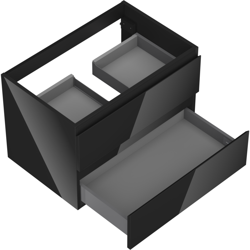 Dette underskapet til servant er utstyrt med 2 romslige skuffer som gir god og oversiktlig oppbevaring av baderomstilbehør. Skuffene har funksjon for myk og stille lukking (myk lukking), noe som øker komforten i hverdagsbruk og beskytter både møbelet og innholdet mot harde slag. Fullt uttrekk på skuffene gjør det enkelt å nå hele innholdet, selv innerst.