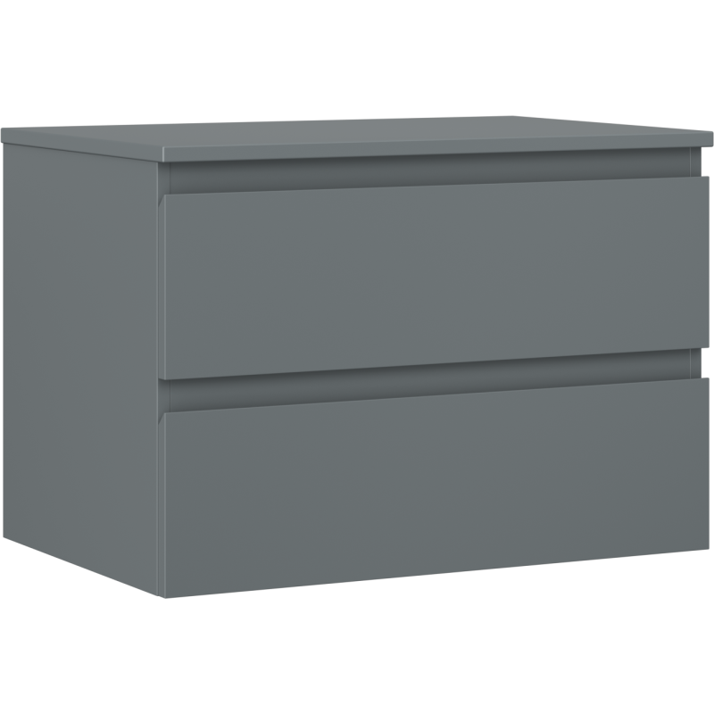 Servantskapet har et tidløst uttrykk i grafitt matt, med glatt front og ensartet farge på både korpus, fronter og topp. Med kompakte ytre mål og god innvendig plass er dette et praktisk servantskap til bad som passer godt i både små og større baderom.