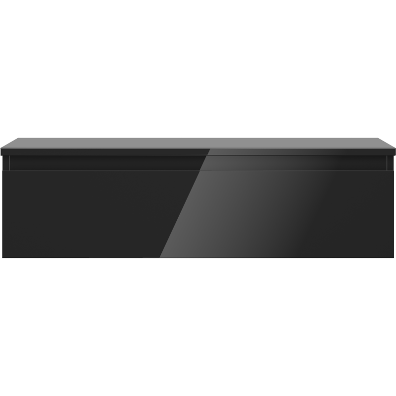 Den romslige skuffen gir rikelig med oppbevaringsplass, slik at du kan holde baderommet ryddig og organisert. Den veggmonterte løsningen gjør det enkelt å rengjøre gulvet under skapet, samtidig som det gir et lett og moderne uttrykk. Den slitesterke, UV-bestandige overflaten i svart høyglans er enkel å tørke av og holder seg pen over tid, noe som gjør dette servantskapet til et praktisk og varig valg som servantskap til bad.