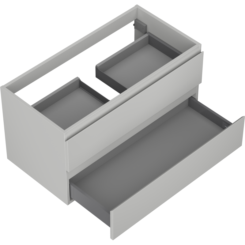 Dette underskapet til servant er utstyrt med 2 romslige skuffer som gir god plass til oppbevaring av daglige baderomsartikler. Skuffene har funksjon for myk og stille lukking (myk lukking), som øker komforten i bruk og beskytter møbelet mot slag og slitasje. Fullt uttrekk på skuffene gjør det enkelt å nå hele innholdet, også det som ligger innerst.