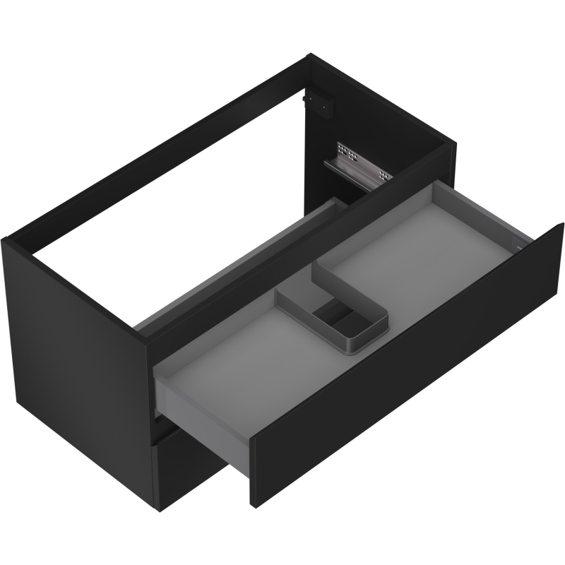 De to romslige skuffene gir god og oversiktlig oppbevaringsplass til daglige baderomsartikler, slik at benkeplaten kan holdes ryddig. Den glatte, lakkerte overflaten i svart matt er enkel å rengjøre og vedlikeholde, og motstanden mot UV-stråler gjør at servantskapet beholder sitt eksklusive preg over tid. Den stille lukkemekanismen bidrar til en rolig og behagelig brukshverdag, spesielt i husholdninger hvor badet brukes ofte.
