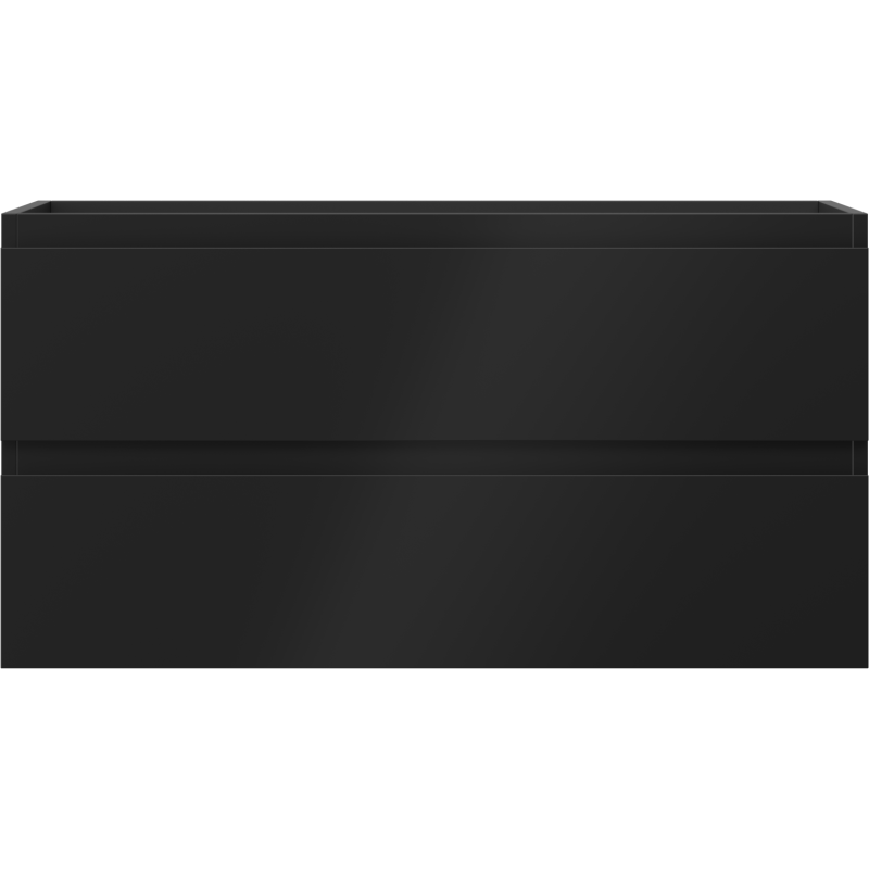 Servantskapet har en bredde på 90 cm, høyde på 47 cm og dybde på 46 cm, noe som gir en god balanse mellom kompakt ytre mål og romslig oppbevaringsplass. Utførelsen i svart matt på både korpus og fronter gir et tidløst og elegant uttrykk, og gjør dette baderomsmøbelet svart til et naturlig midtpunkt i innredningen.