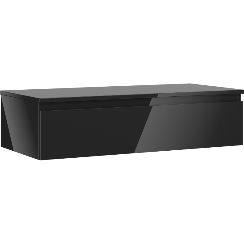 - Toppplate i svart høyglans MDF, tilpasset skapets mål