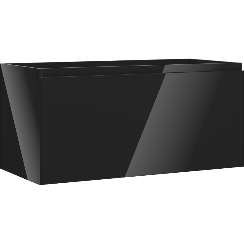 Servantskapet har en bredde på 100 cm, høyde på 47 cm og dybde på 46 cm. De gjennomtenkte målene gir rikelig med oppbevaringsplass samtidig som møbelet beholder et kompakt og stilrent uttrykk. Den glatte overflaten i svart høyglans gir et eksklusivt preg og passer perfekt inn i moderne baderomsinnredninger.