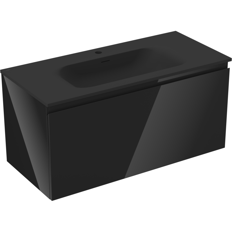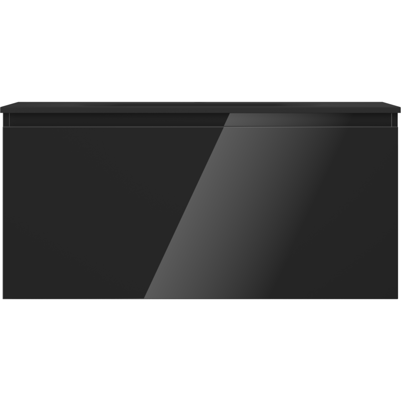Skapets korpus og front er utført i svart høyglans, som skaper en eksklusiv kontrast mot den svarte, matte servanten. Med en dybde på 46 cm og høyde på 47 cm gir dette svarte servantskapet på 100 cm god plass til oppbevaring uten å ta for mye plass i rommet. Løsningen er ideell som servantskap med skuff for deg som vil kombinere design og praktisk lagring.